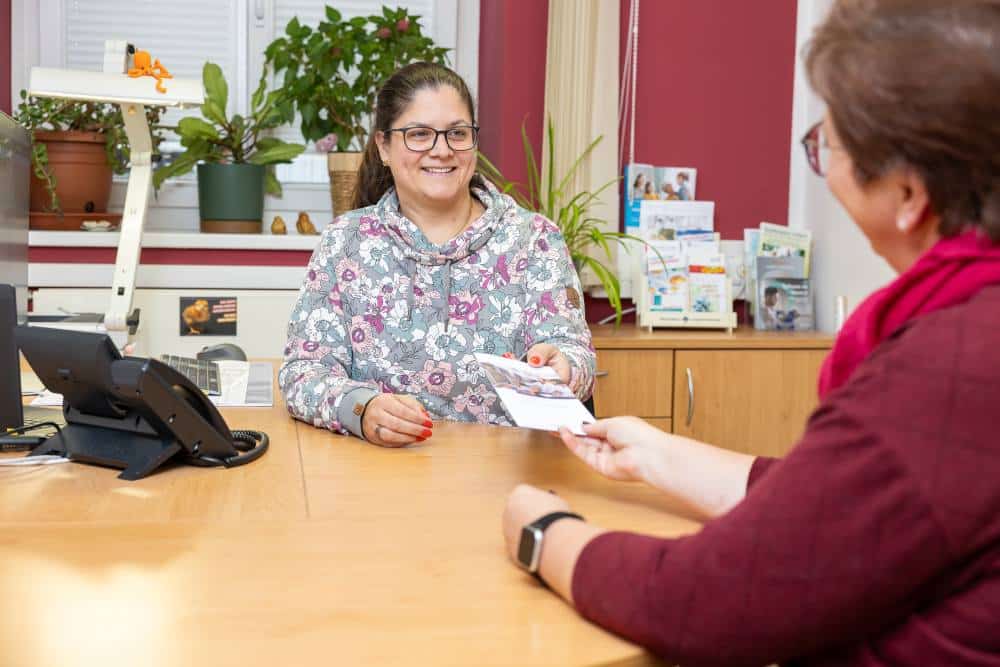 - Ergänzend steht Ihnen unsere Sozialarbeiterin für sozialmedizinische Beratung zur Seite – sei es bei Fragen zur Berufstätigkeit, Schwerbehinderung oder sozialen Teilhabe.